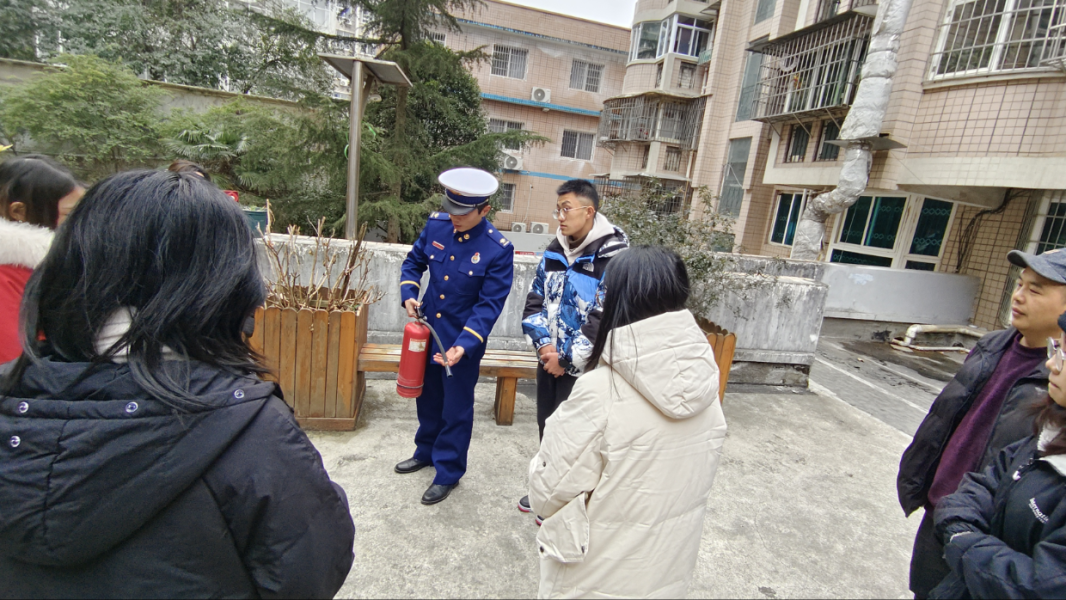 同时,花溪区消防救援大队潘雄杰进行消防器使用现场教学,让社区居民对消防器材有了更进一步的了解和认识。