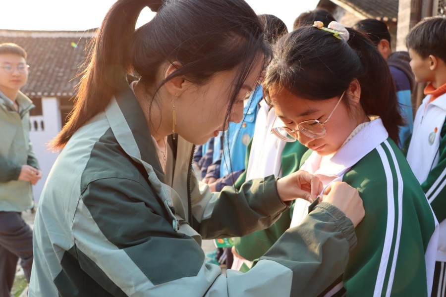此次入团仪式在庄严的国歌声中拉开帷幕,研支团成员为新团员颁发团员证,并将团徽庄严地佩戴在新团员左胸前。随后,研支团成员带领新团员们一道重温了入团誓词,激励团员不忘誓言,不辱使命。