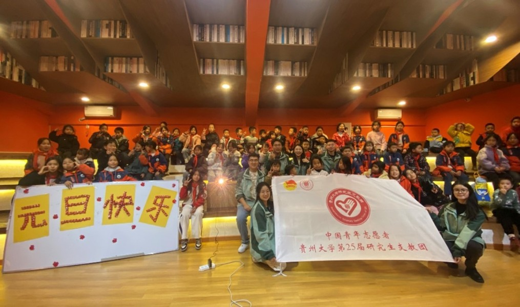 团委网站讯(记者 冯铃鸿 报道│摄影 姜若琪)为弘扬中华民族传统文化,让学生更好地了解中国传统习俗,12月28日,贵州大学第25届研究生支教团贞丰支队在共青团贞丰县委的支持与指导下,在Join Fun图书馆开展“共迎新岁·‘童’庆元旦”系列活动,参与学生来自贞丰县第三幼儿园、第四幼儿园、第十小学,共计70余名。