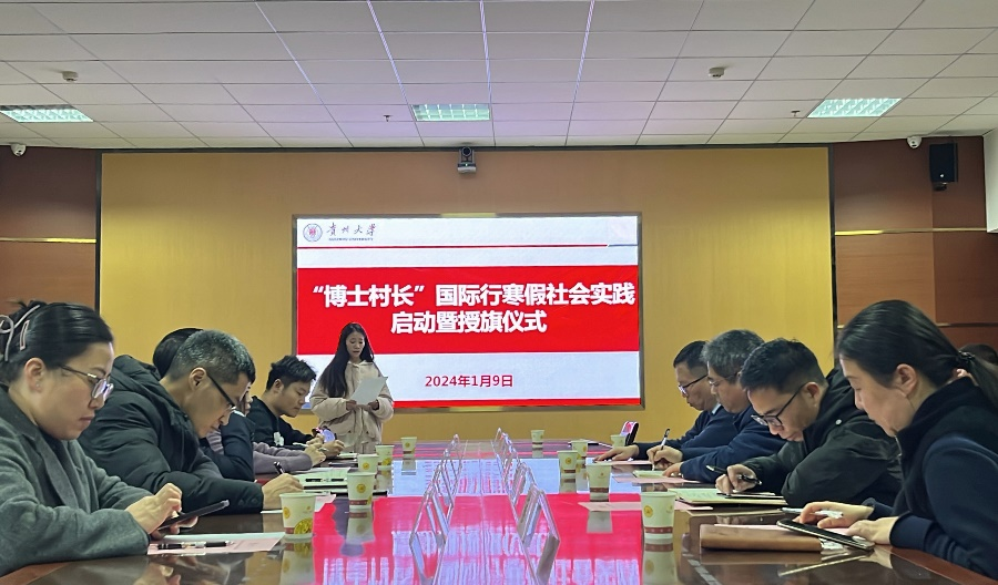 团委网站讯(记者 王玉如 报道|摄影 王兴昶 邹梦婷 朱星铖 何可 徐书港)1月9日下午,农学院举行2024年寒假社会实践启动暨授旗仪式,贵州大学副校长张大林、研工部部长张小彬、研工部副部长綦娅、农学院院长潘学军、农学院党委副书记王明、教师工作处刘涛老师、农学院研究生科蔡菲老师、肖宇老师、王勇教授等出席活动,博士后代表、项目中方发起人孙靖娥及团队主要成员参加活动。