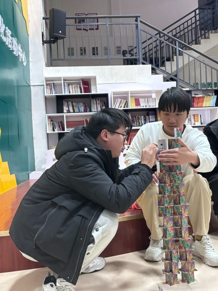 小小纸牌承载着同学们积极向上的梦想,他们搭建属于自己队伍的“纸牌高塔”,时而眉头紧锁,深思熟虑;时而灵光乍现,迅速调整策略。每一座纸牌塔都是同学们心血与智慧的结晶,也是他们对目标的持续坚持的体现。