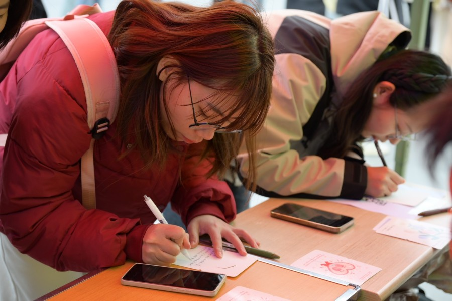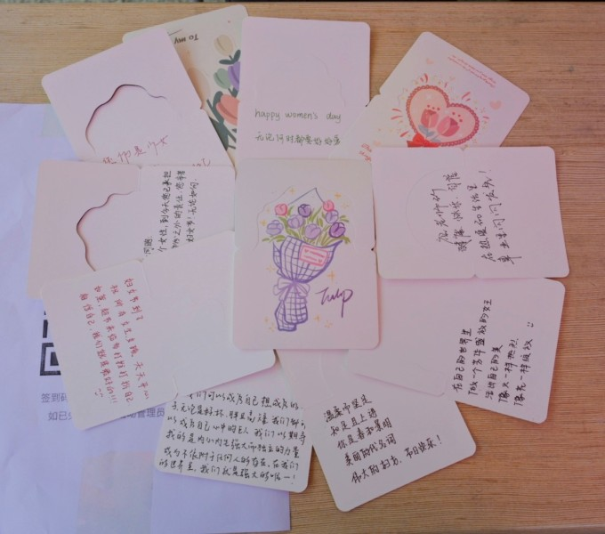 在活动现场,同学们积极参与,执笔写下对自己和身边女性的鼓励和祝福,每一个字都承载着他们对女性的温情与智慧。活动现场为参与同学准备了百余份甜美奶茶兑换券以及多种多样的精美礼品,参与人数达400余名。