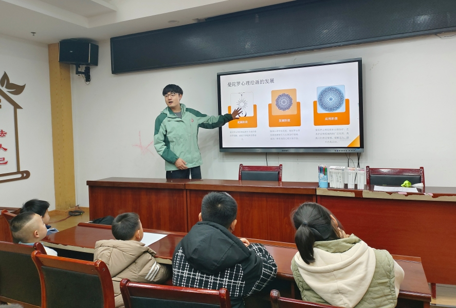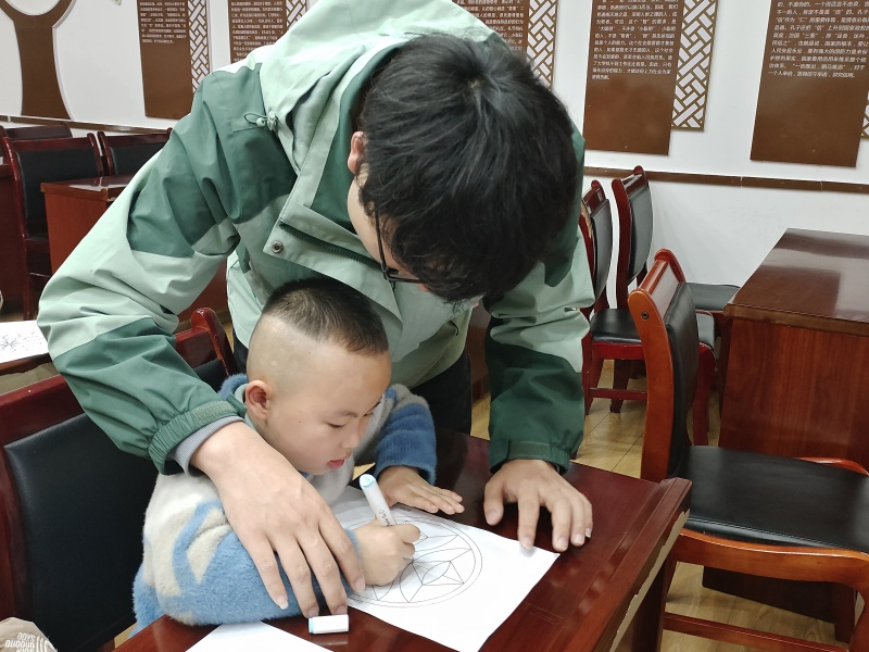 活动现场,社区孩子们与研支团志愿者们一同参与曼陀罗心理绘画。研支团志愿者们为孩子们提供了丰富的绘画材料和指导,让他们能够尽情发挥想象力,表达内心的感受和情绪体验。