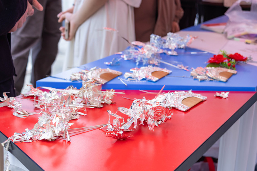 此次活动内容丰富多彩,形式多种多样,深受同学们的欢迎。苗学研究青年小组向同学们展示了苗族的敬酒礼仪“高山流水”以及特色毽子活动等,伴随着清澈的嗓音中,苗族少女身着苗族传统服饰载歌载舞,向同学们展现了苗族的热情似火,呈现一片欢乐祥和的氛围;水族文化研究协会展示了各种水族民族服饰,水书以及马尾绣服饰;侗族文化协会展示了其银饰,手饰,乐器等;民乐协会进行竹笛各种弹奏同时介绍了其正确演奏方式和结构,吸引了大量民乐爱好者;“探索 风尚”少数民族文化协会则为同学们搭建交流民族文化的平台,鼓励同学们相互交流民族文化,让多元文化得以传承和发扬。