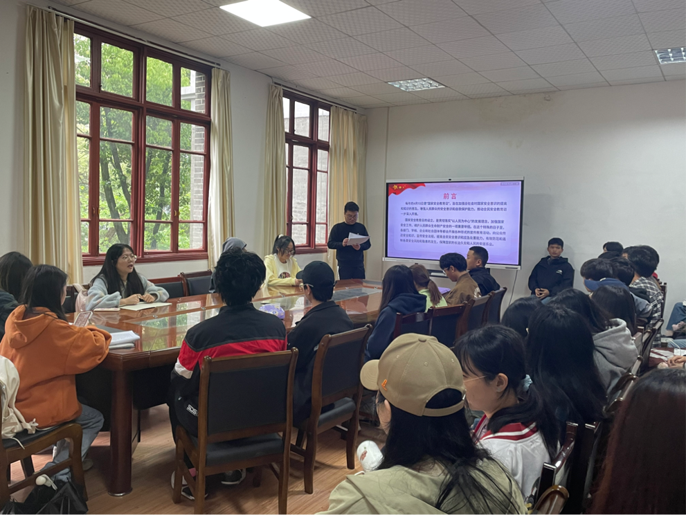 4月11日,文学院在人文楼204会议室开展了“国家安全教育日”宣传活动,本次宣传活动从“何为国家安全”“当前国际国内形势”“如何维护国家安全”三个方面展开。通过此次活动,同学们深刻认识到了维护国家安全的重要意义,明确了国家安全的重要性,培养了更加深厚的爱国情操。