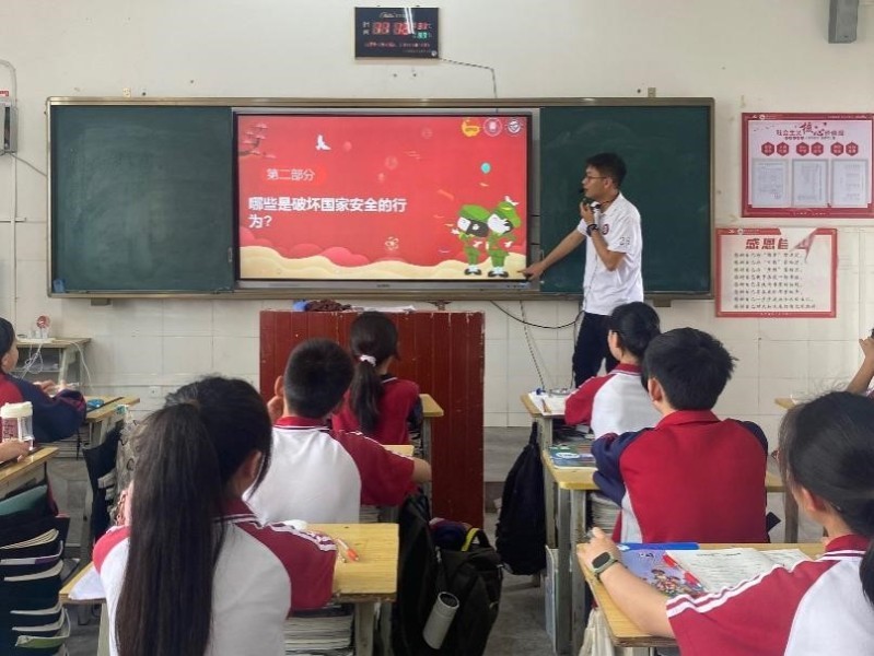 宣讲过程中,成员向学生讲解全民国家安全教育日的由来、国家安全的内涵,并结合实例对破坏国家安全的行为进行介绍,引导学生做筑牢国家安全的践行者和守护国家秘密的监督者,明确维护国家安全,人人可为。