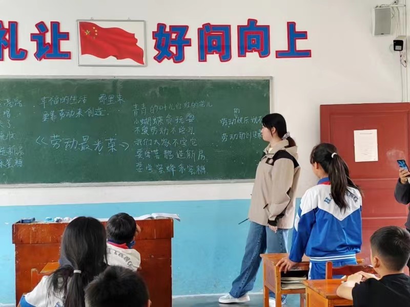 “劳动的快乐说不尽,劳动的创造最光荣”,在歌声中,研支团的志愿者用音乐让孩子们了解劳动最光荣的真谛。