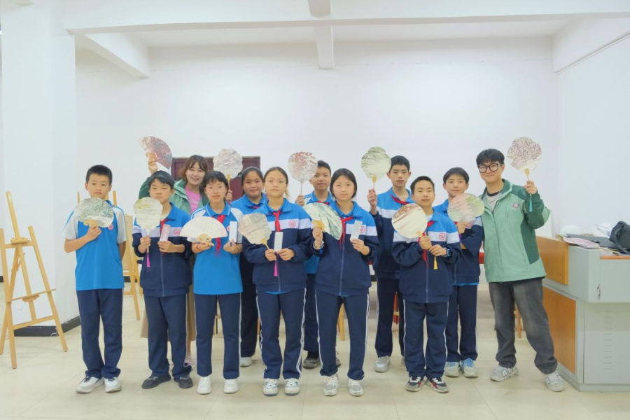 课外活动,学生们积极参与,踊跃发挥创造力,更深入了解了中国传统文化的精髓。在漆扇工艺的世界中,每一笔每一划都蕴含着深厚的文化内涵和工匠精神。研支团志愿者们耐心教授学生制作漆扇,让他们感受到传统文化的魅力与独特。