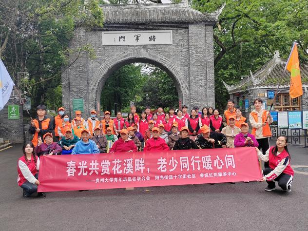 团委网站讯(记者 林芸羽 报道|摄影 陈甚烨)5月12日上午,我校青年志愿联合会敬老服务队与阳光街道十字街社区睿月红阳康养中心联合举办的春光共赏花溪畔,老少同行暖人间活动在花溪公园拉开帷幕。本次活动旨在让社区内的老年人与青少年共同欣赏春日花溪公园的美景,增进代际之间的交流互动,传承中华孝道美德,共同谱写温暖人心的社区篇章。