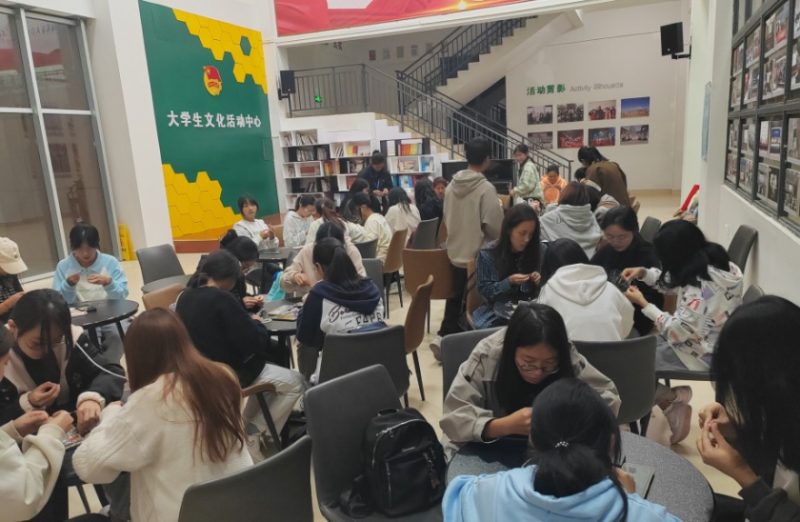 11月18日,在雅文楼广场一楼开展纸浆画制作活动