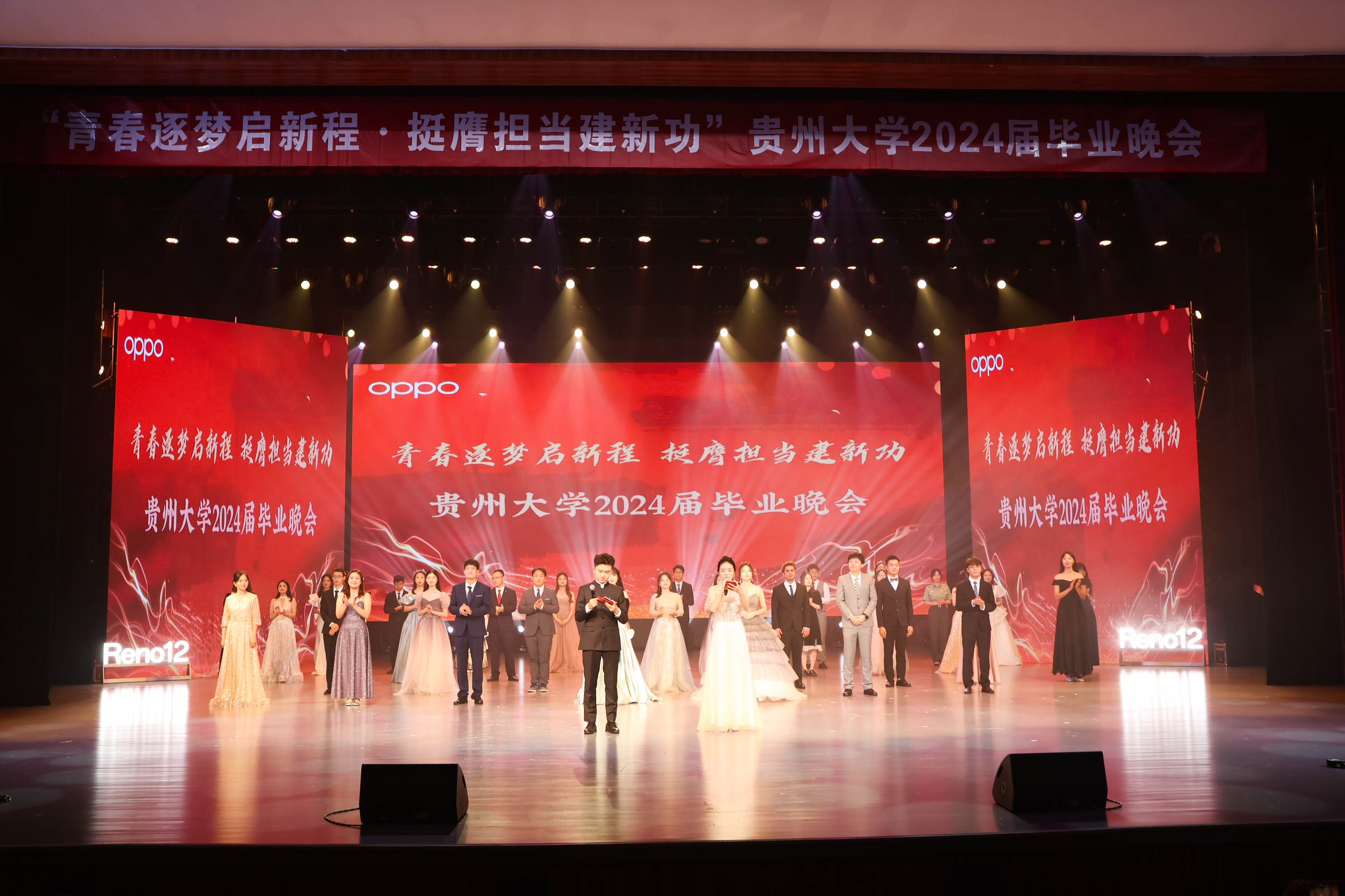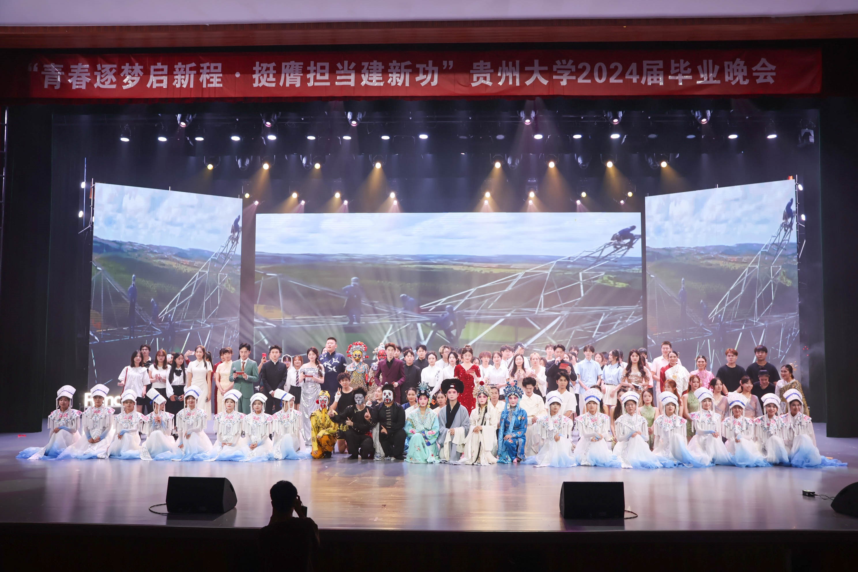 团委网站讯(记者 申雪 徐再 简莎莎 报道 | 摄影 曾忠华)心怀梦想,奔赴远方。6月18日,贵州大学2024届毕业晚会在西校区溪山剧场成功举行。本次晚会以“青春逐梦启新航,挺膺担当建新功”为主题,以逐梦、启程、建功三个篇章串联,涵盖了歌舞、戏曲、朗诵、小品等多种艺术形式,现场1000余名师生欢聚一堂,共同度过了一个难忘的夜晚。