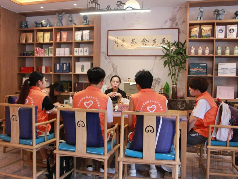 团委网站讯 7月18日,贵州大学旅游与文化产业学院“黔质今生”实践队前往贵州省雷山县毛克翕茶业有限公司,进行了主题为“农文旅融合,促生态产品价值实现”的调研活动,追溯银球茶创始人毛克翕及其三代人发明、传承、革新银球茶的全部过程,了解探究银球茶产业作为雷山县重点打造的“茶麻菇稻”农文旅融合现代化产业园中的重要一环,产生的发展新态势。