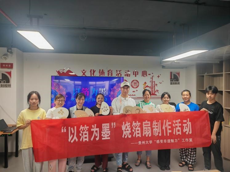 团委网站讯(记者 王晨阳 报道|摄影 涂泽星)烧箔扇,是一种国家级非物质文化遗产,具有悠久的历史和独特的艺术价值。7月3日下午,校“感受非遗魅力”工作室在花溪区迎宾社区开展“以箔为墨”烧箔扇制作活动。