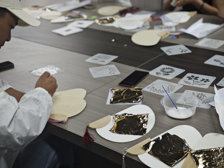活动伊始,主持人向社区居民们讲解烧箔扇的来源与历史发展。居民们在志愿者的帮助下制作烧箔扇,挑选图案、滴胶、拓印、磨光。制作结束后,居民们都无不感叹烧箔扇精美的设计与风格。