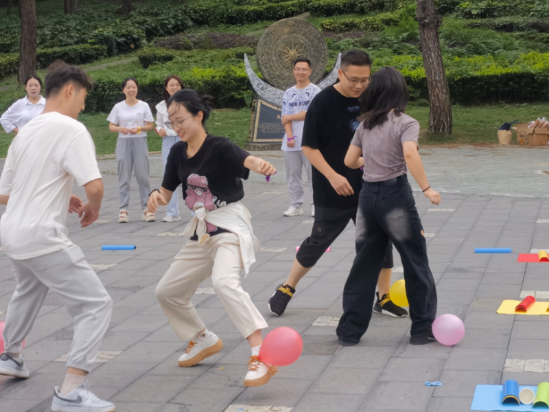 踩气球大战,团队成员分工合作,现场氛围热烈,充分展现青年学生积极向上的青春活力,进一步熟悉校园环境与人文风景。此次活动拉近了同学间的距离,让彼此之间的联系更加紧密,激励同学们在未来的日子里继续携手前行。