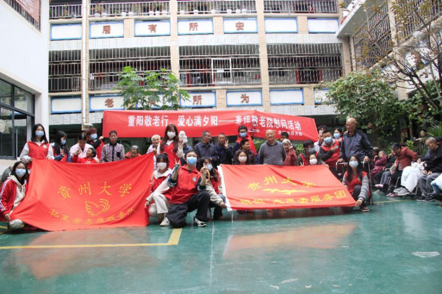 团委网站讯 九九重阳日,敬老爱亲时。10月11日,我校“银鸽”志愿者服务团、拓荒者志愿服务队和民乐协会的17名志愿者去往花溪区麦坪镇中心养老院开展以“重阳敬老行,爱心满夕阳”为主题的敬老院志愿服务活动。