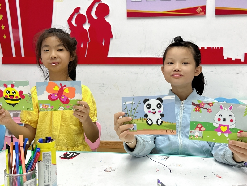 图3 大公田社区孩子们展示手工贴画作品