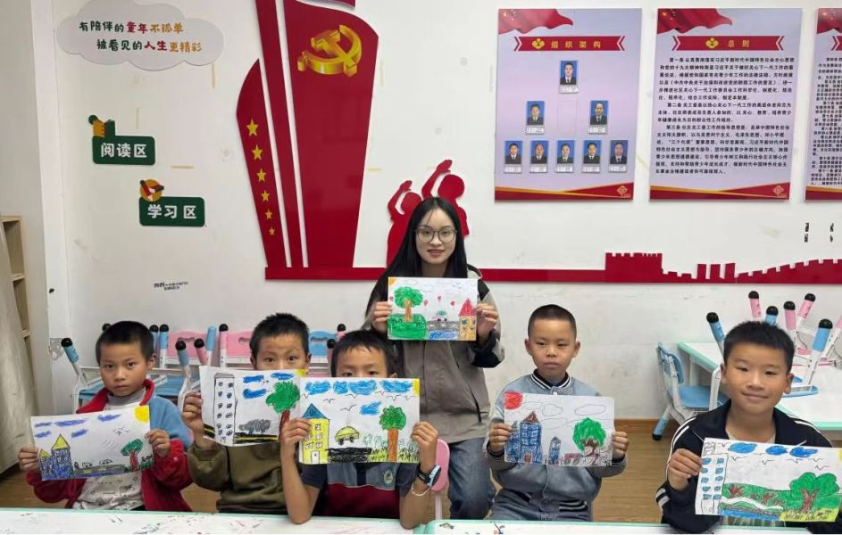 团委网站讯(记者 韩绪 报道|摄影 韩绪 汪玉华)为增强社区青少年对家乡锦屏的了解和热爱,激发孩子们对家乡文化的传承与保护意识,近日,团锦屏县委组织我校第26届研究生支教团锦屏支队,深入大公田社区,开展了一场别开生面的“彩笔绘乡情 童心探古韵”主题绘画活动。