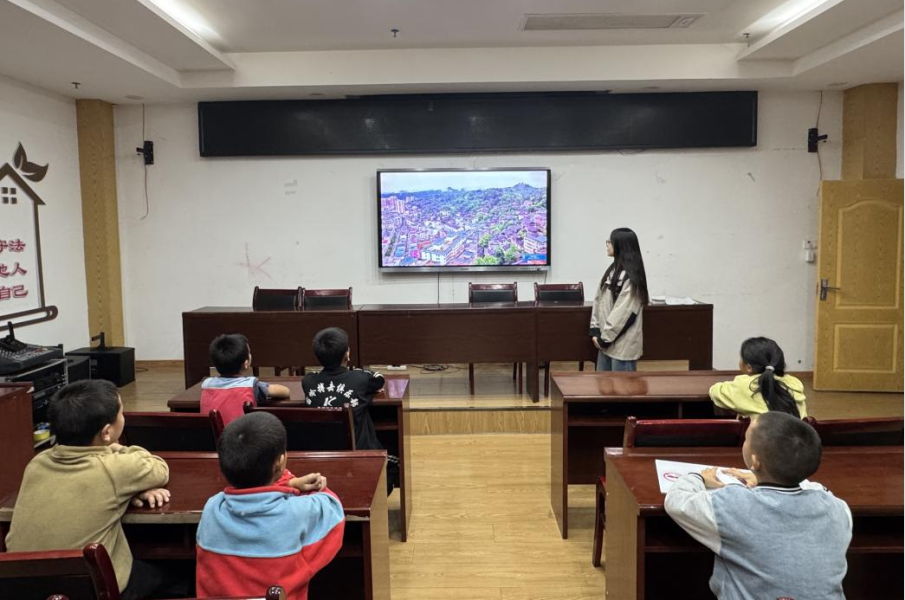 为了让孩子们更加直观地感受家乡的魅力,志愿者准备了一段锦屏县的宣传视频。视频中,古朴鼓楼、风雨桥映入眼帘,见证了锦屏县的历史岁月,民族节日庆典热闹上演,苗侗同胞盛装歌舞,尽显锦屏文化多彩。孩子们聚精会神地观看视频,不时发出阵阵惊叹,表示对家乡有了更深刻的认识。