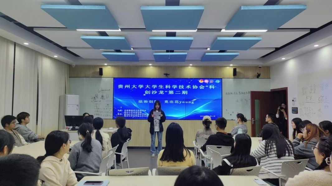 团委网站讯(记者 周毫 报道|摄影 曾开慧)11月1日,我校大学生科学技术协会联动法学院大学生科协在逸夫楼423教室举办了以“法治创新,竞出花young”为主题的第二期“科创沙龙”。本次活动由雷雨洁担任主持人,特别邀请了2024级法律(非法学)专业的硕士研究生张宇作为主讲嘉宾,以其在学科竞赛领域的丰富经验和独特见解,与现场的法学院学子共享法学和竞赛融合的实践之道。