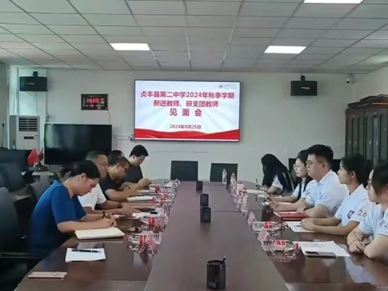 团委网站讯 8月25日下午,贵州省贞丰县第二中学召开新进教师及我校研支团教师见面座谈会。本次会议由校长钱保华主持,副校长吴秀洪携各职能部门领导班子成员参会。