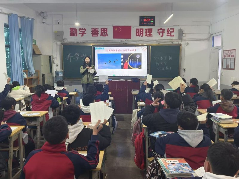 新学期,新目标。高瑞芳引导学生们写下新学期计划。同学们认真思考,兴致勃勃,在纸上写下自己的一个个小目标:有的希望提高学习成绩,有的立志多读好书,还有的决心树立良好的行为习惯。高瑞芳说:“制定计划是迈向成功的第一步,希望同学们能够脚踏实地,一步一个脚印地实现自己的目标。”