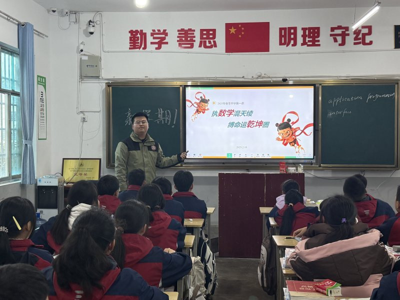 关注时事,胸怀天下。田庄结合假期热点事件,与同学们展开互动。他以近期热映的动画电影《哪吒之魔童闹海》为例,引导同学们思考影片中经典台词的深刻含义,鼓励他们勇于创新,突破自我。此外,他还带领同学们回顾了春节联欢晚会上机器人的精彩表演,并巧妙融入数学知识,激发孩子们的学习热情。