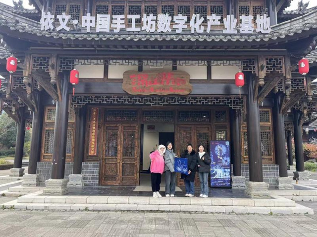 走进依文·中国手工坊数字化产业基地,团队成员了解依文·中国手工坊数字化产业基地主要建设内容为四中心一平台,分别为文旅融合产业示范中心、数字化研发展示中心、手工艺设计研发中心、手工艺全球交易中心与线上选品云仓和选品平台,这也是织金县蜡染刺绣非遗传承体验空间与中小学生社会大课堂的实践基地。