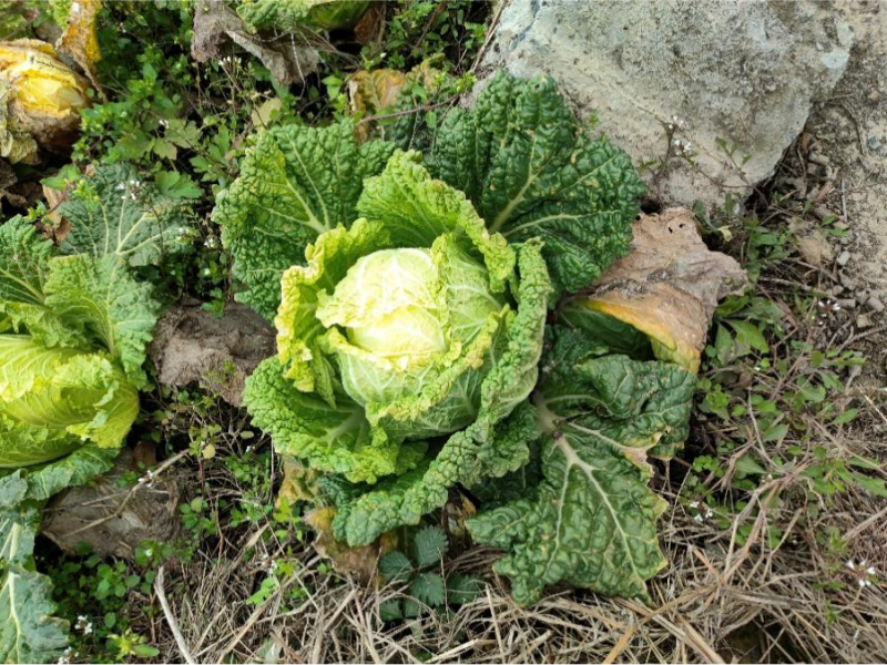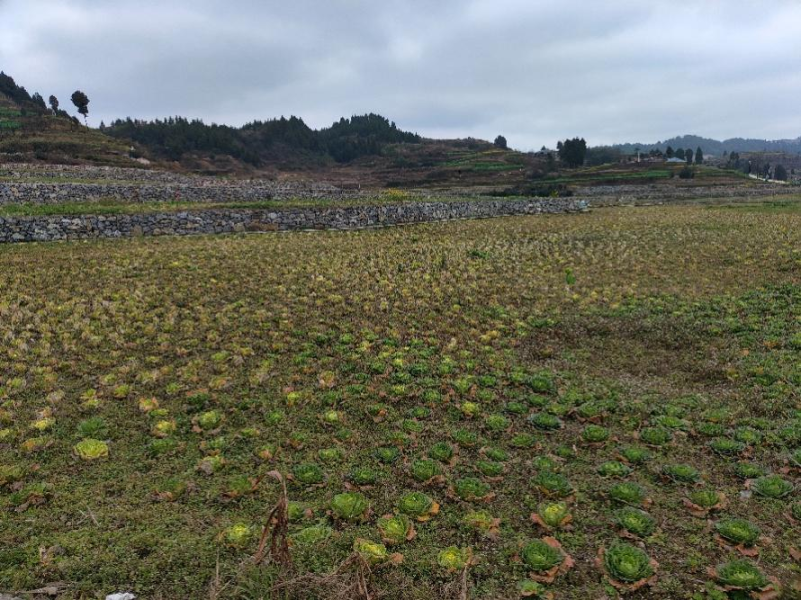 仁怀市八一村娃娃菜基地的部分娃娃菜最外层发生枯黄