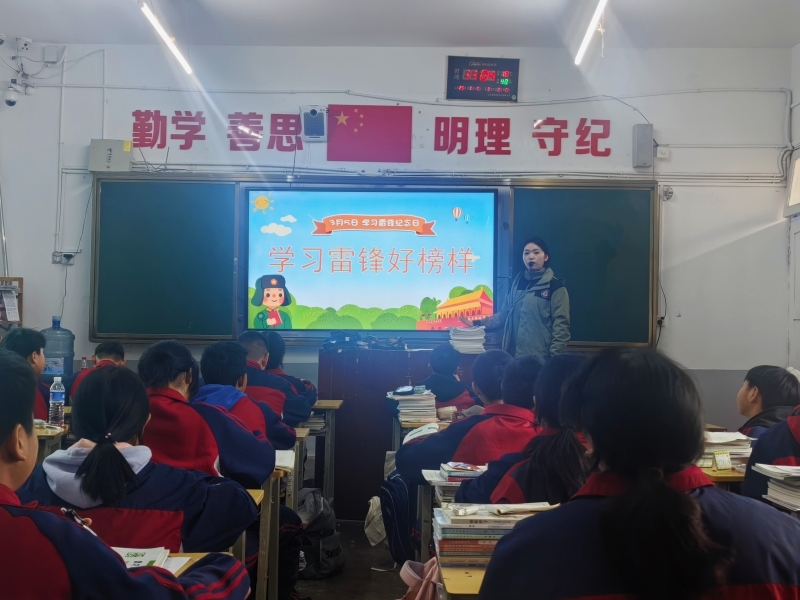 清晨的校园里,研支团成员以三个一活动为载体,带领二中学子深度感悟雷锋精神。首先是举行一次宣讲,研支团老师们走进班级,向同学们生动讲述雷锋的故事,深刻阐释雷锋精神的内涵,引导同学们树立正确的价值观和道德观。