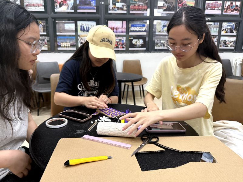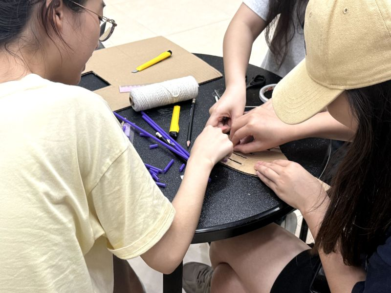 活动中,主持人李欣雨介绍了比赛规则,以及比赛所需材料和工具的使用方法。参与者们充分发挥创意与协作精神,利用提供的硬纸板、木棍、绳子和橡皮筋等材料,现场设计并动手制作简易机械手。