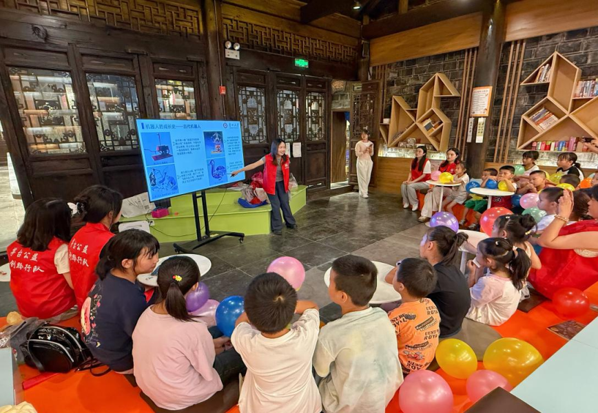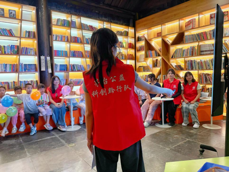 团委网站讯(记者 刘露 报道|摄影 姜若琪)7月15日,茅台公益贵州大学科创黔行队在贞丰县珉球书院开展科普宣讲、科创派对与科创剧本杀系列活动。活动以“科创启智,青春逐梦”为主题,通过互动讲解与实物展示相结合的方式,为当地青少年带来了一场生动有趣的科技启蒙体验。