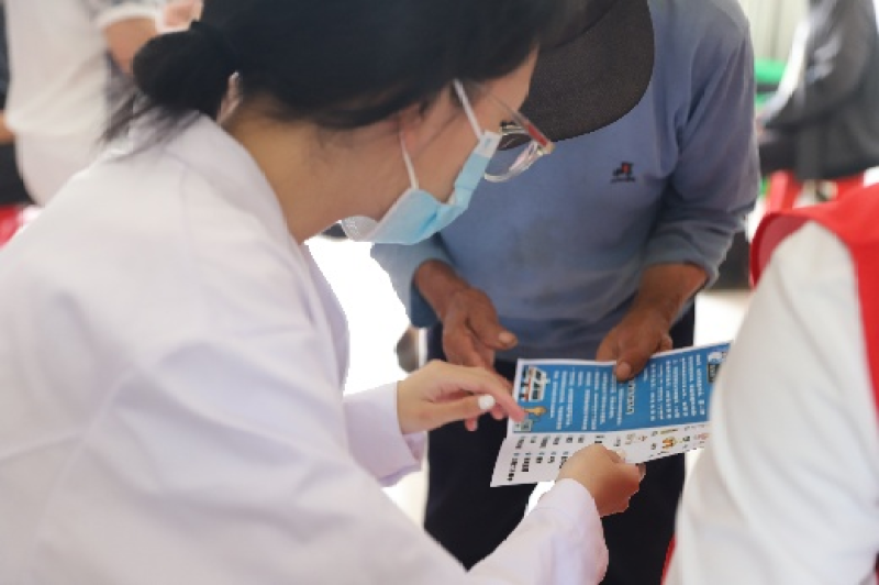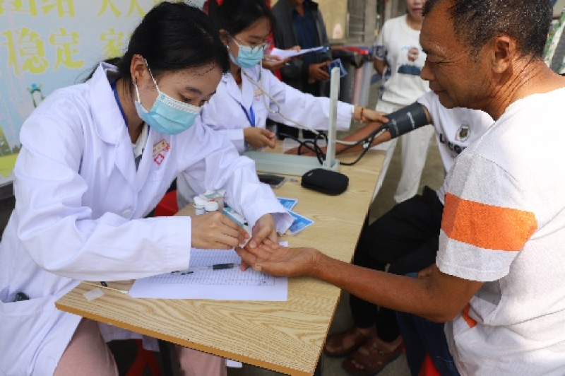 实践队在贵安新区湖潮乡磊庄村、花溪区同兴山庄等地设立健康服务点,为村民和社区居民提供血压、血糖监测,慢性病防治知识普及等义诊服务。针对检测结果异常的群众,队员们结合宣传手册讲解科学健康管理建议,并倡导定期体检的重要性,切实提升基层群众的健康意识,提升基层健康素养。