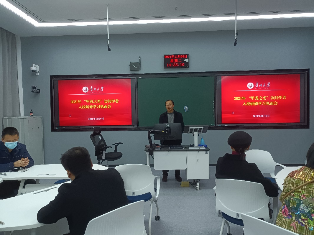 11月9日下午,2021年“甲秀之光”访问学者到校研修学习见面会在西校区明俊楼智慧教室136室举行。校党委组织部相关负责同志与33名访问学者进行交流。