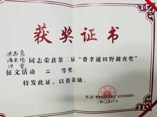 贵州大学经济学院师生荣获第二届“费孝通田野调查奖”征文活动二等奖。贵州大学经济学院供图