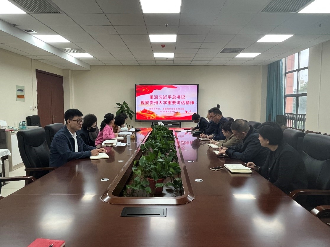 在习近平总书记视察贵州大学12周年之际,2023年5月9日,对外合作处、发展规划处联合党支部围绕习近平总书记视察贵州大学讲话精神开展专题学习活动。