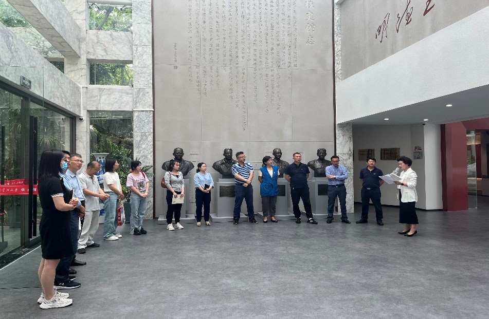 2023年6月20日,在全党深入开展学习贯彻习近平新时代中国特色社会主义思想主题教育之际,根据学校机关党委统一安排,对外合作处 发展规划处联合党支部、评估中心(高教研究所)党支部结对开展“联学联建强党性 互学互促共提升”活动,14名党员同志以及民主党派人士一起走进贵州大学校史馆,参观校史展览,共同回顾贵州大学百年风雨历程,进一步引导党员同志坚定理想信念,增强党性修养,在贵州大学高质量建设发展中发挥先锋模范作用。