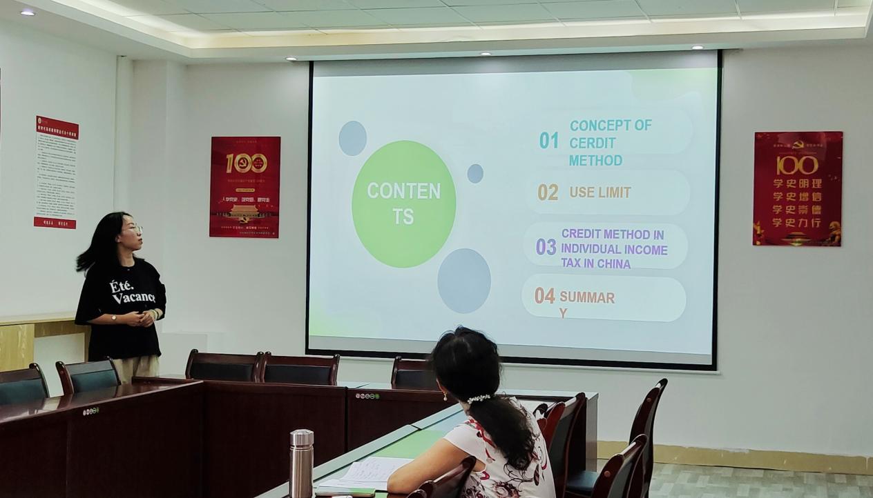 紧接着,巴英老师围绕《抵免法在个人所得税中的运用》进行教学试讲。她首先利用视频材料生动地介绍了税收抵免的背景和意义,随后详细解读了抵免法的基本概念、适用范围和计算方法,并结合案例探讨抵免法在个人所得税中的具体运用。这种教学方法实用性强,案例教学是亮点。