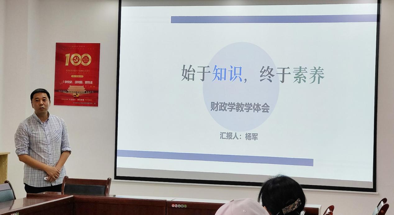 会议伊始,杨军老师开展了以“始于知识,终于素养”为主题的财政学教学体会分享,总结了教学经验以及教学方式的未来转向。首先,杨军老师针对知识具有遗忘性、外生性以及加速更新的特点,提出“知识融入现实、现实验证知识”的新型教学方式,以达到学以致用、知识内化与教学创新的教学目标。其中,杨军老师以“公共物品”的教学为例,通过让学生观察校园中的路灯、图书馆等实物,生动体现理论概念。同时,引导学生分析电视信号因技术进步、城市路灯因交易方式转变所导致“公共物品”非排他性的改变,从而引发对知识的反思与批判。