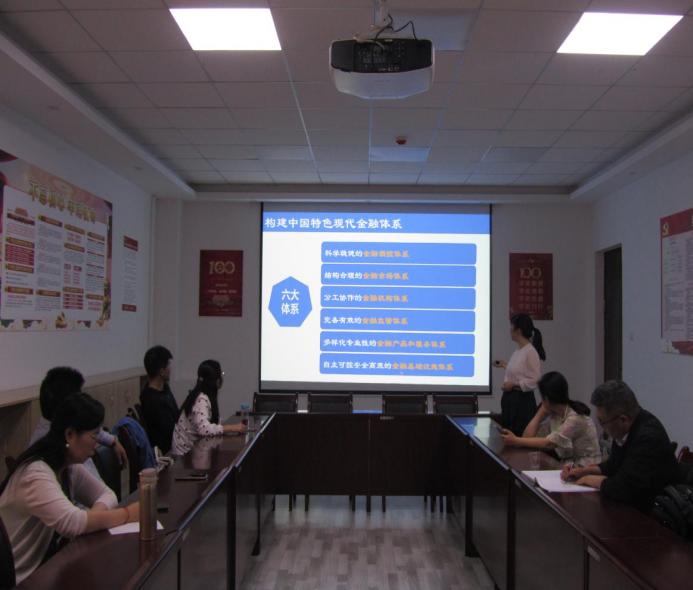 周雪梅老师落实中央金融工作会议精神,做了《遵循现代金融发展规律,培养中国特色金融人才——贯彻落实中央金融工作会议精神》的专题报告,紧紧围绕中国特色金融发展之路的“八个坚持”、“六大体系”和科技金融、绿色金融、普惠金融、养老金融与数字金融五大文章,深度融合到《商业银行经营管理》及其实践实训课程中。