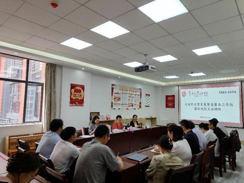 2024年7月4日下午,学校高质量发展督查督办工作组张成霞、许鹿、方芳一行莅临学院进行指导工作。学院党委书记胡环宇、院长洪名勇、副书记向秋丹、副院长朱满德、正处级组织员王忠於、各教研室主任、教学科、学生科相关人员等参加会议。