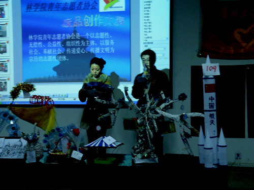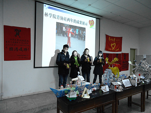 新闻网讯(记者团 实习记者 李燕 林学院 贺元波报道)为增强同学们的环保意识,12月3日晚,林学院青年志愿者协会在我校南区二教424多媒体教室举办“天使行动美化环境,废品模型创意”大赛暨颁奖仪式。本次评选出的优秀作品将于翌日在花溪公园等进行展出。