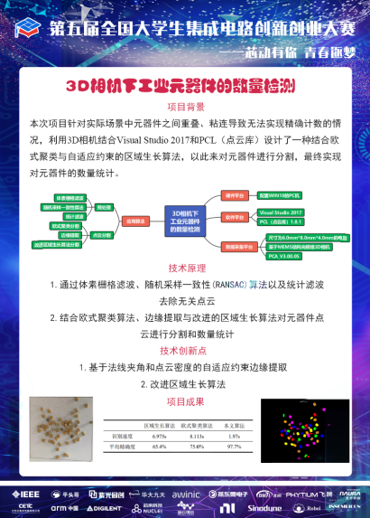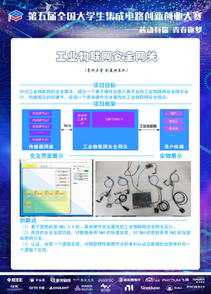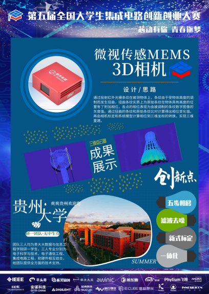 近日,在2021年第五届全国大学生集成电路创新创业大赛中,我校大数据与信息工程学院研究生组成的三支参赛队伍在我校教师周骅、田有亮、陆安江的指导下,获得了两项全国一等奖、一项全国三等奖的优异成绩。其中,由王明涛、熊建丰、罗锋组成的“到底对不队”战队的作品《工业物联网安全网关》获得了本届赛事“飞腾杯”全国总决赛一等奖;由黄际玮、陈伯云、彭熙舜组成的“不倒翁”战队的作品《3D相机下工业元器件的数量检测》获得了本届赛事“中科芯杯”全国总决赛一等奖;由黄潇、陈浪、唐娟娟组成的“无中生有”战队的作品《基于微视传感MEMS 编码结构光投射模组的3D相机》获得了本届赛事“中科芯杯”全国总决赛三等奖的优异成绩。