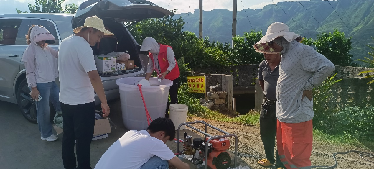 在晴隆县农业农村局戴局长的陪同下,团队成员实地调查了柑橘基地的生长和发病情况,团队采用了随机采样法,对柑橘根部土壤、叶片及果形指数等进行了采集记录,随后将团队研发的生物天敌产品稀释液均匀喷施于柑橘树根系及周围区域,后续将会对果树的生长情况进行持续跟踪调查,为“晴隆脐橙”的高质量可持续发展保驾护航。