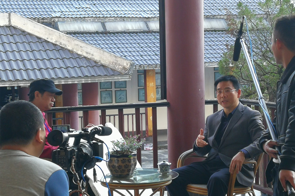 2018年11月26日下午,贵州大学历史与民族文化学院(中国文化书院)张明副教授、黄诚教授以及贵州大学出版社《龙场阳明文库》总主编、贵州大学中国文化书院兼职研究员、贵州省修文县阳明文化专家杨德俊先生,在中国文化书院接受《王阳明龙场悟道》(四集纪录电影片)拍摄组对王阳明在贵州各项活动所进行的专题访谈。