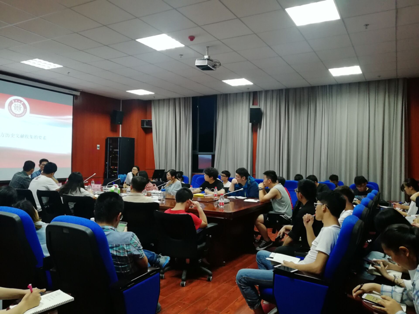 随后讲座正式开始,李连昌老师认为文献是科研的基础,同时文献应该是一个宽泛的概念,除了图书、报刊之外,碑刻、摩崖以及金石等都是文献,一切有价值的文化载体都应该称为文献。接着,李连昌老师从地方历史文献收集的观点、地方历史文献收集的要素和地方历史文献的分类整理三个方面展开论述。在地方历史文献收集方面,他提出了五个观点。第一,要结合专长,找到适合自己的文献,抓住地方历史文献;第二,使用民间征集的文献更容易出成果;第三,地方历史文献的收集要找省内馆藏没有的珍稀文献;第四,要看到文物与文献的差异,做到以文献为主;第五,地方历史文献的收集并没有我们想象中那么难。紧接着,李连昌老师说地方历史文献的收集存在有情、有心、有识、有恒、有缘、有胆、有趣、有闲、有人、有钱十个要素。其中,他重点论述了有识和有胆两个要素,有识就是要增长个人见识,以此才能增加找到珍稀地方历史文献的机会,有胆则是包括拥有胆识和开拓进取意识两个方面,进行历史研究不能只局限于现有的文献,我们要看到贵州农村还存在很多未经发掘的历史文献,努力寻求珍稀文献。最后,李连昌老师谈到了地方历史文献的分类整理,他认为现在地方历史文献的整理率不高,需要更多的人继续努力。