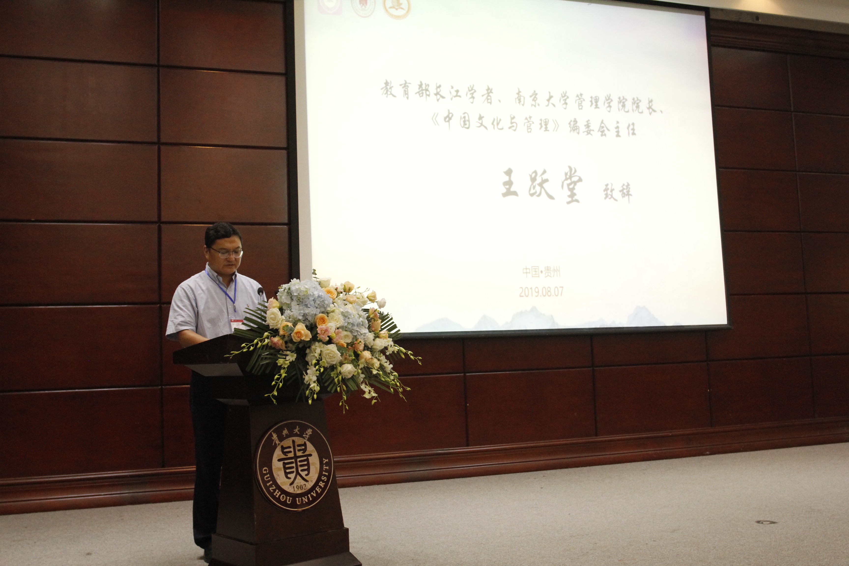 2019年8月7日上午,由贵州大学历史与民族文化学院、南京大学管理学院主办,《中国文化与管理》编辑部、江苏宏德文化出版基金会承办,贵州大学东盟研究院协办的“融合与创新:新时代背景下的中国文化与管理学术研讨会”在我校东校区学术报告厅举行。来自南京大学、贵州大学等高校及科研单位、社会机构等100余位专家学者齐聚一堂,共同探讨“新时代背景下的中国文化与管理的融合与创新”。会议由贵州大学历史与民族文化学院党委书记杨军昌教授主持。