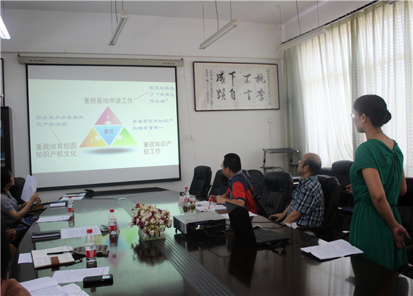 会议伊始,贾洪峰处长就简要明确地说明了此次会议的目的,随后,贵州大学助理巡视员谢田凯发表了讲话,他首先简单的介绍了贵州大学发展至今的百年历史,强调了学校对此次申报教育培训基地工作非常重视,紧接着,法学院院长冷传莉对学院的基本情况作了介绍,法学院教师李萍博士从四个方面分别介绍了学院申报“知识产权教育培训基地”相关工作的准备情况,最后,贾洪峰处长对会议进行了总结.