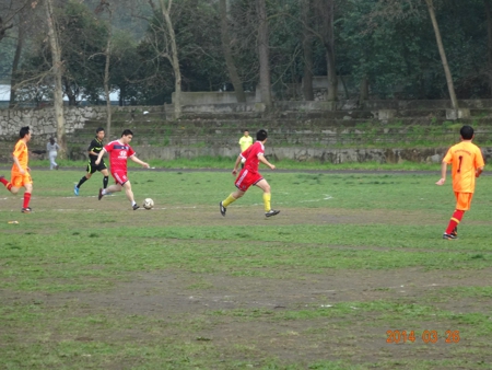 贵州大学第三届研究生体育节男子足球赛已于近期拉开了帷幕。2014年3月26日下午五点,法学院研究生男子足球队在小组赛中迎来了首场比赛,首战对决酿酒与食品工程学院。随着裁判员一声哨响,比赛在北校区老足球场上正式拉开。上半场一开始两队的球员展开了激烈的角逐,双方猛烈的进攻,彼此的球员们都毫不示弱,展现出各自细腻的脚法、默契的配合、缜密的队形部署,但是很快法学院凭借高超的技巧先入一球。与此同时,酿酒学院在队长的领导下及时调整心态,进行反攻。