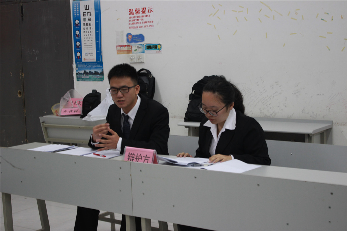 八分之一决赛第二场作为产生四强队伍的最后一场比赛,战况异常激烈。第一组由公诉方“炮兵突击队”对抗辩护方“征弈队”,第二组由公诉方“苍鹰队”对抗辩护方“红与黑队”。辩论环节中,双方辩手灵活的思维和缜密的逻辑推理,以及不时的引经据典,旁征博引都赢得了在场同学的阵阵掌声。随着比赛的进行,双方辩手针锋相对,你来我往,却又不失风度,侃侃而谈。